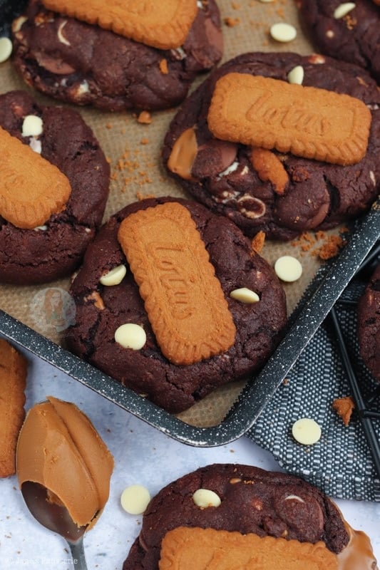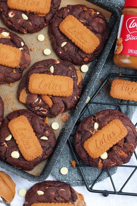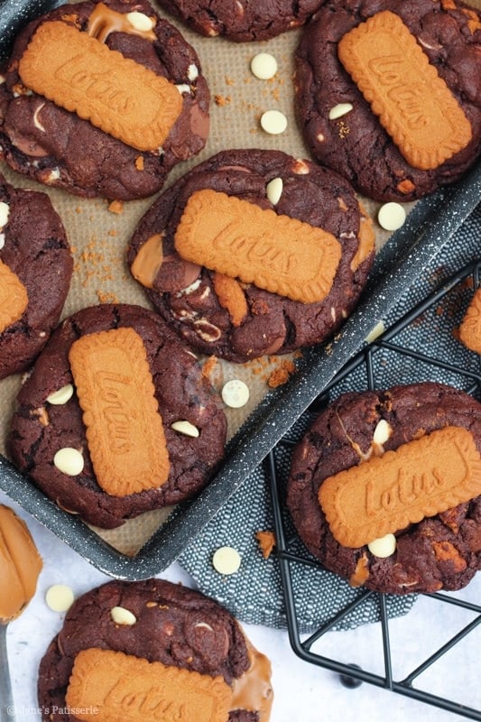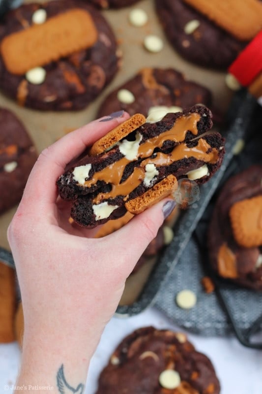 I decided to use the same base cookie as I personally adore the double/triple chocolate flavours with the biscoff. You can make them plain or vanilla however by using 300g plain flour total!