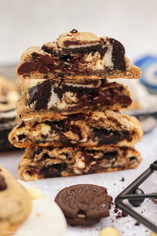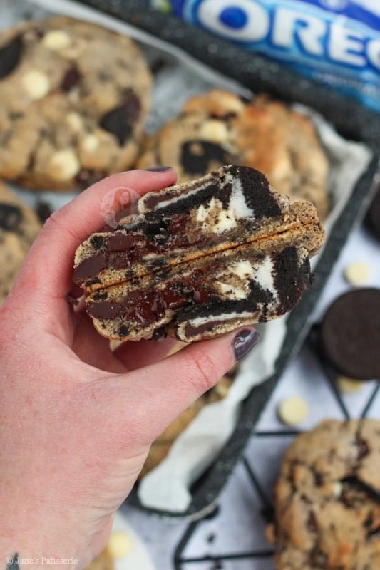 I had a craving recently where I wanted to make another biscuit themed cookie because my Biscoff stuffed NYC Cookies went down so well.. so I turned to another one of my favourite biscuits! Oreos! I just can’t resist them.