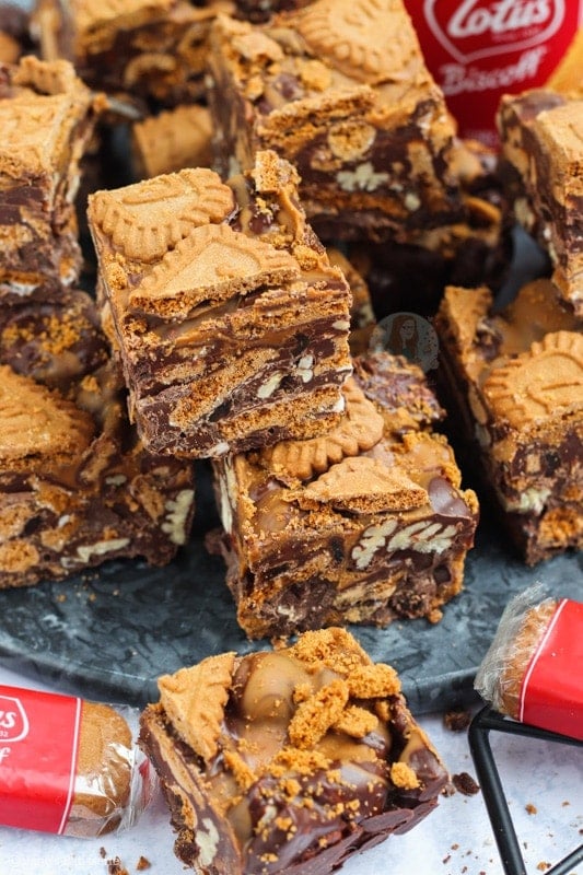 My Biscoff Rocky Road is made with white chocolate and is the most delicious thing – so for this I decided to go down the milk/dark chocolate route as Biscoff also marries so well with them.