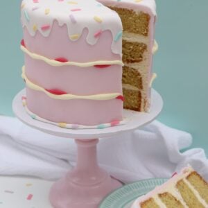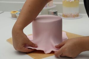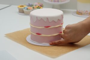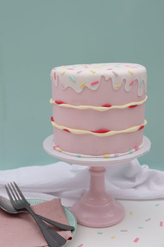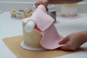 The flavours of the cake can easily change, and the theory of the cake works the exact same for larger or smaller sizes – you just need to follow the same guidance and increase the fondant accordingly! I always found in the past that when I did a cake like this, you will have some leftover fondant but that is totally okay!