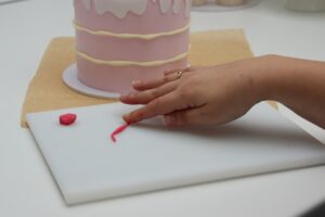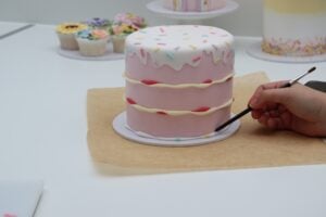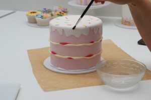 We decided to use a simple vanilla base cake with a vanilla buttercream as this post is mainly about the decoration! I have attached Dani’s photos on the instructions so you can see what to do at what point! Honestly I feel like this has even given myself enough confidence to give it a go!