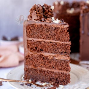I made this for my daughters birthday yesterday. I baked in 4 x 8″ tins for 30 mins instead. I also used half golden caster and half soft dark brown sugar as I didn’t have light brown in. It was the best chocolate cake I’ve ever made. Everyone loved it. So thank you!!