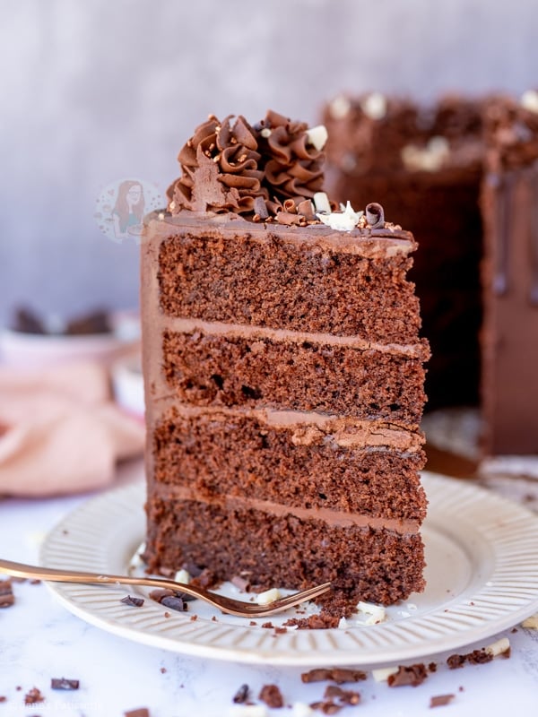 The cake itself is a basic chocolate cake – this is because I find it much sturdier to work with compared to a chocolate fudge cake sponge. A simple chocolate Victoria sponge recipe is the dream for me!