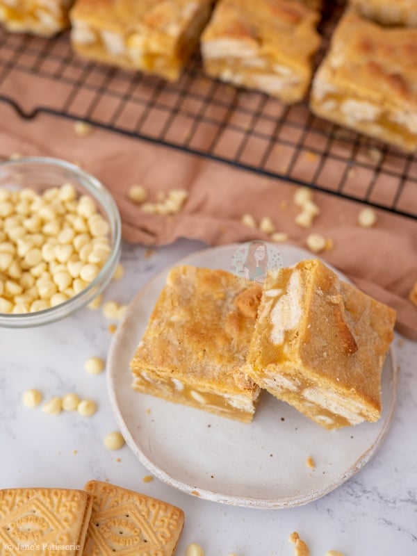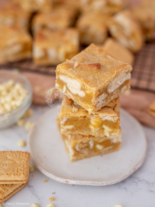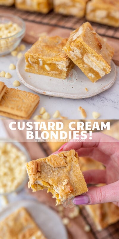 I have had so many requests for a custard cream blondies recipe that I can’t actually cope! My biscoff blondies and my bakewell blondies have always been so popular, but I have a feeling these are going to be on another level.