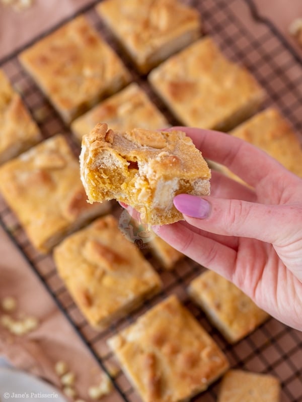 I have a thing for blondies as they are such an easy traybake to make, but also just so good! They are fudgey, sweet, and incredibly moreish. With a custard twist, they are even better! Honestly, I know you will enjoy them.