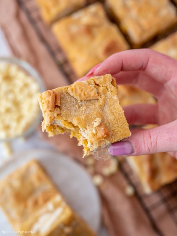 Honestly, go for it. It’s worth noting that these are rather addictive though, and custard creams are one of my favourite classic biscuits out there! Biscuit blondies are definitely a must try for biscuit lovers everywhere!