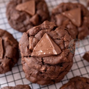 Easy delicious and chocolatey Toblerone NYC cookies – with a chocolate cookie dough base, chunks of chopped Toblerone, and even more goodness.