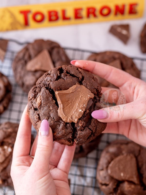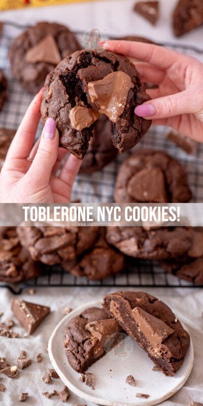 Can we just take a moment to realise… Toblerone NYC cookies. That’s all we need to say to be honest because oh my gosh these are just insane. Toblerone chunks and chocolate cookie dough make the most amazing combination ever!