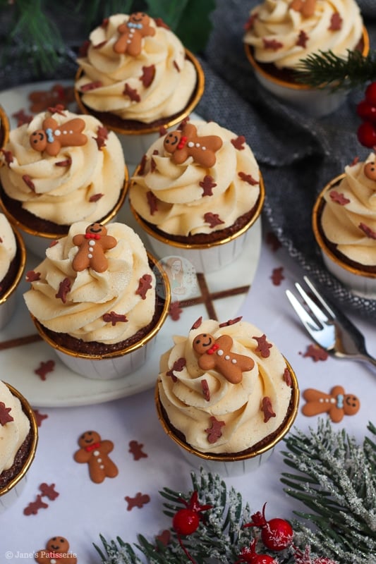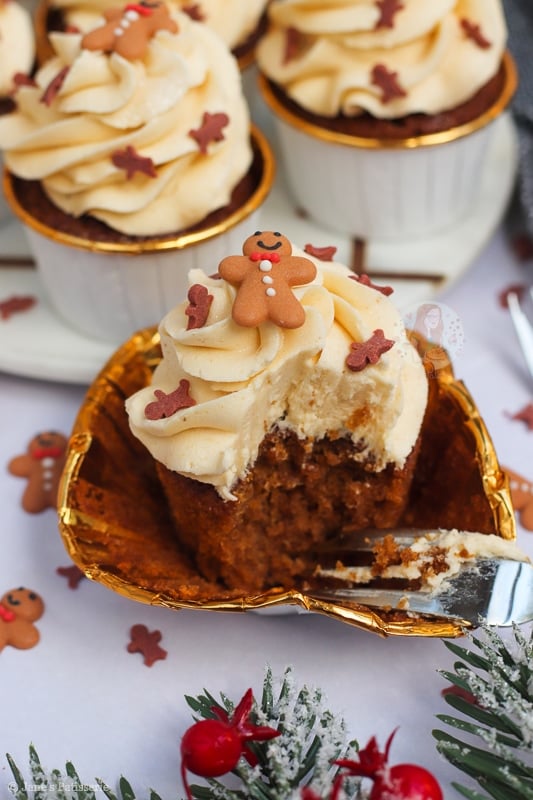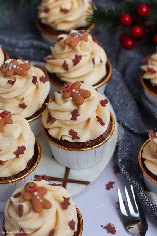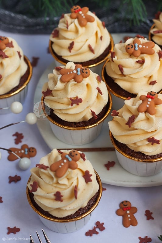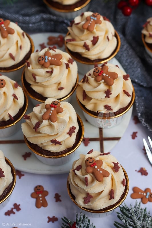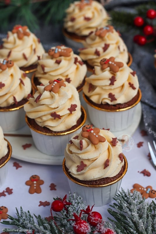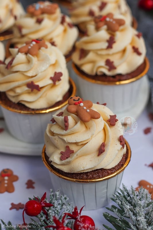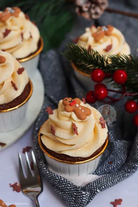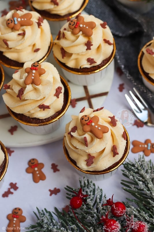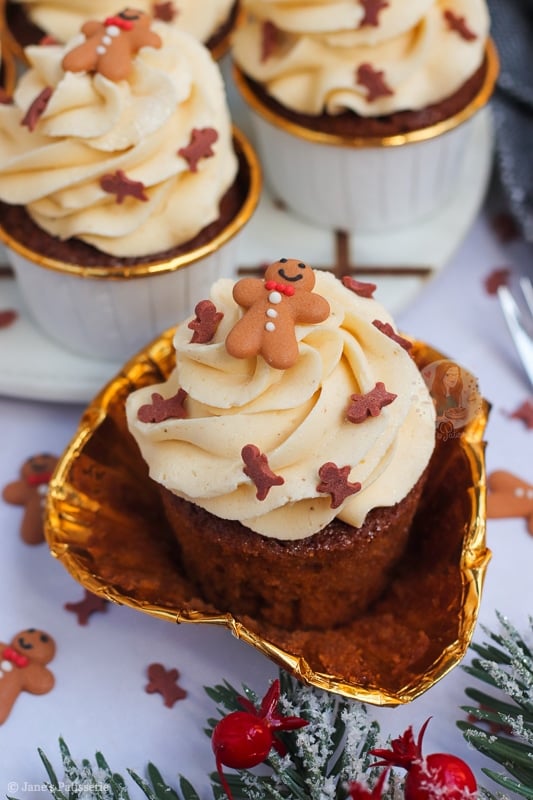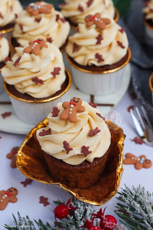 I have many gingerbread recipes on my blog such as my gingerbread loaf cake, my gingerbread millionaires shortbread, and my gingerbread trifle just to name a few… but cupcakes? Cupcakes are where it is at as they are easy, simple and delicious.