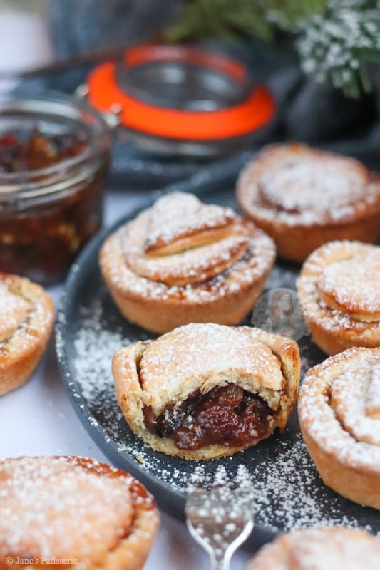 For these mince pies, you don’t have to bake the pastry blind, so that skips an often annoying step! You just need to make the mincemeat. It’s often better to make the mincemeat first so it’s cooled and ready to bake – so there is a top tip for you. Also, the mincemeat lasts for up to six months in a sealed sterilised jar!