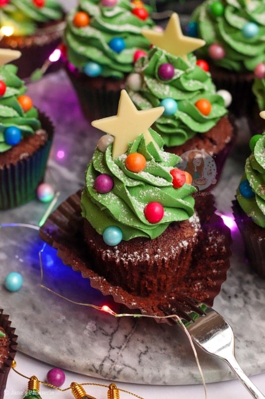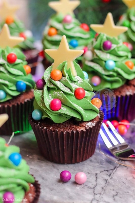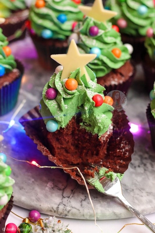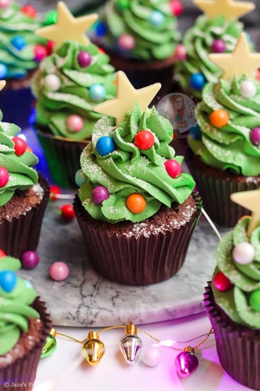 If you wanted to have a little fun with the flavours you can easily flavour the cupcakes using 1 tsp of extract in the sponge and/or the frosting – you could use orange, peppermint, almond etc… it’s up to you!Or you can leave it vanilla and plain as I have. I hope you love this fun and festive recipe as much as I do! Jane x