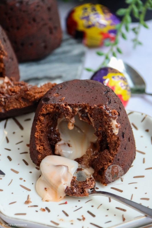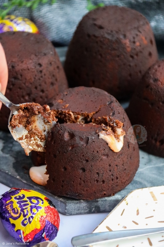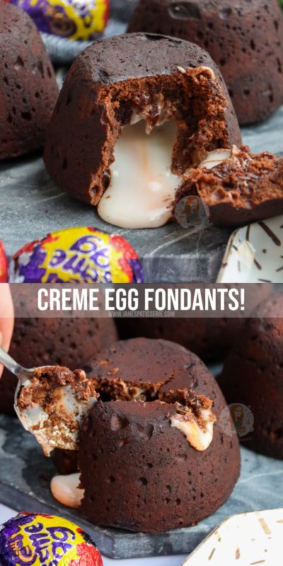 Delicious and super easy creme egg fondants with a chocolate fondant cake, stuffed with a molten creme egg centre.