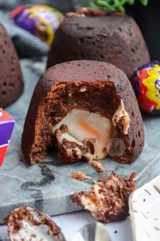You have to leave them for about 10 minutes to settle after baking, but then they are ready to serve. You need to serve them straight away so that the chocolate is still quite gooey and delicious, and so that the creme egg is lovely and runny. I 100% recommend devouring these, even if you aren’t a massive creme egg fan… they are amazing!