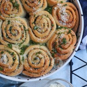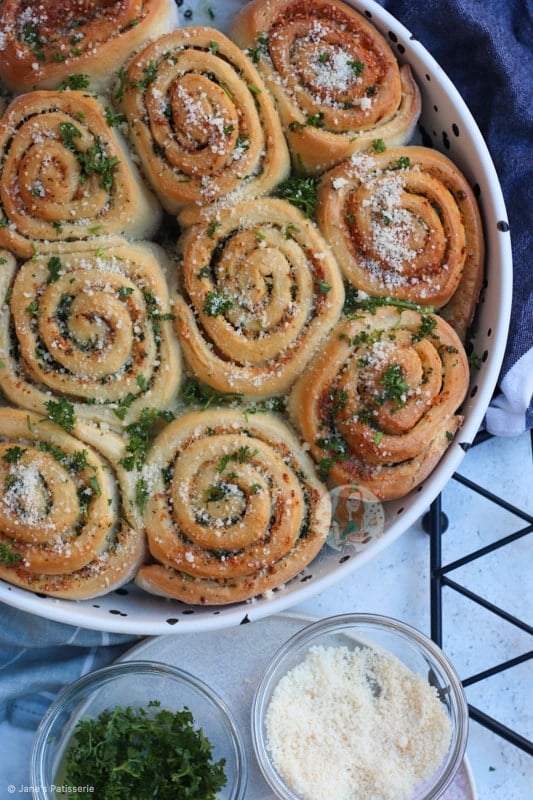 I wanted to post this garlic bread rolls recipe for a while because it is the savoury and delicious garlic version of my homemade cinnamon rolls which is by far my most popular bread bake I have ever done – and I am so happy for this one to take the number one spot. I am utterly in love – and you will all adore it too.