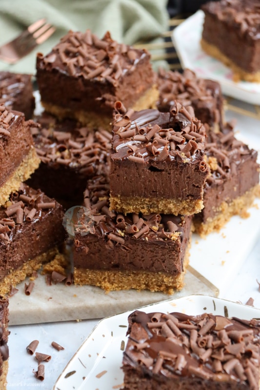 These chocolate cheesecake bars are rich, delicate, and absolutely and utterly scrumptious – enjoy them!! Jane x