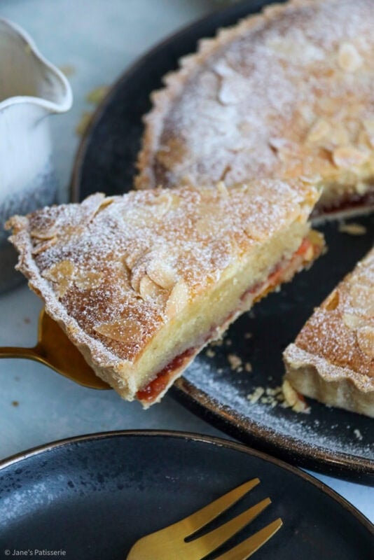 For those of you who don’t know… A Bakewell tart is a typically English pudding which consists of a shortcrust pastry case with layers of jam, frangipane, and a topping of flaked almonds – and it is just wonderful. It originated in the small town of Bakewell in Derbyshire, and has become a worldwide phenomenon, and one of my favourite flavours on the planet.