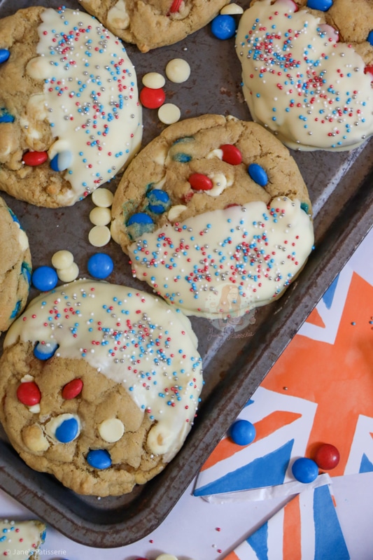 I wanted to create a second Jubilee recipe for the platinum jubilee next weekend, and I thought what better than a cookie?! We all know how much I love my NYC Cookies and anything themed, so it seemed like the perfect chance to combine my two loves and make these Jubilee cookies!