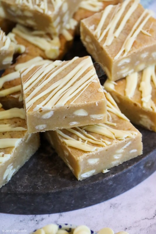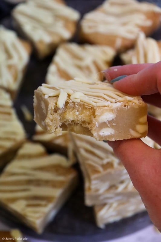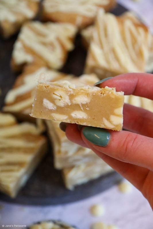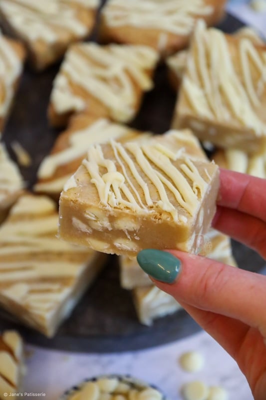 So as the main base for these blondies is white chocolate, you need to use good white chocolate. I use this one in all of my baking as I find it’s best, it doesn’t create a greasy texture, and it works perfectly for melting down and as chocolate chips.