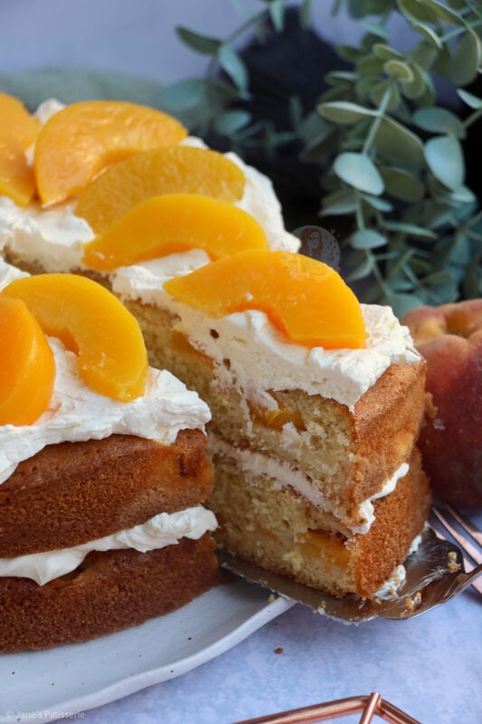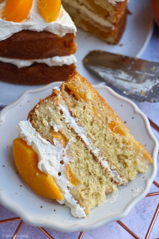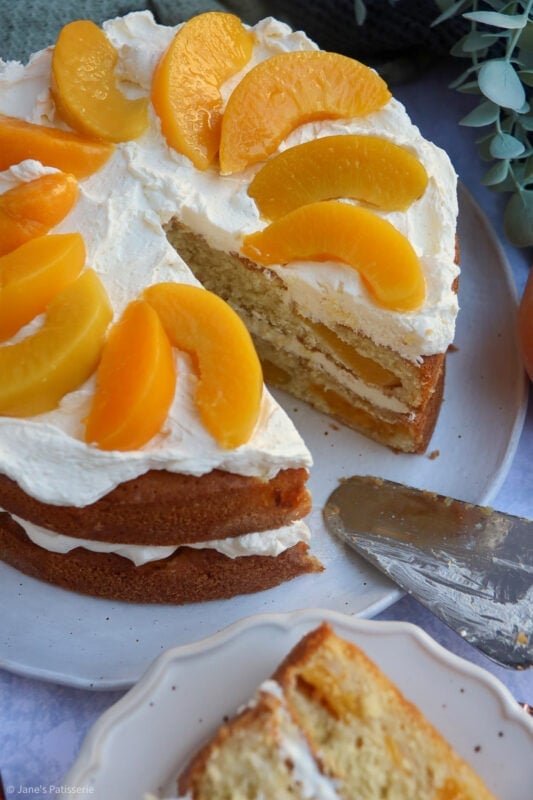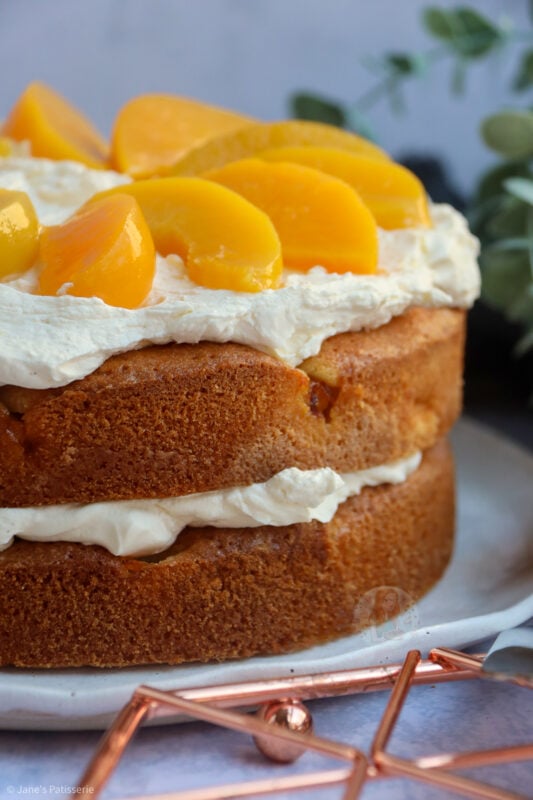 A peaches and cream cake was a bit of a curve ball for me at first as it seems far too simple… but oh my days it is heaven. Heaven in every single little bite ever. I baked this cake earlier in the year (I usually bake several months ahead of when bakes appear on my blog!) so I used tinned peaches and they were perfect.