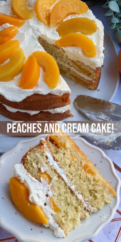 A simple yet delicious peaches and cream cake with peach sponges drizzled in peach syrup, and whipped sweetened cream – heaven!