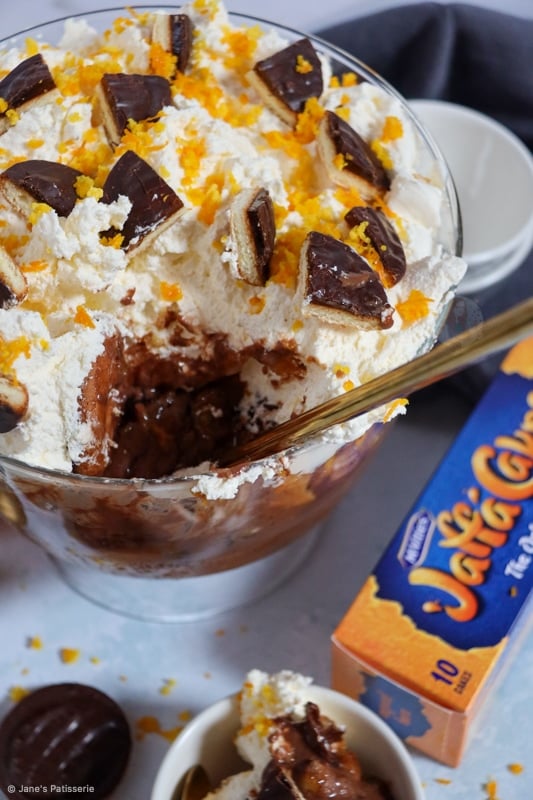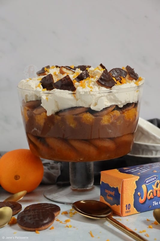 So yeah… this has happened. It’s not one I ever thought I would get the chance to do, but after SO MANY REQUESTS here is my Jaffa Cake Trifle!