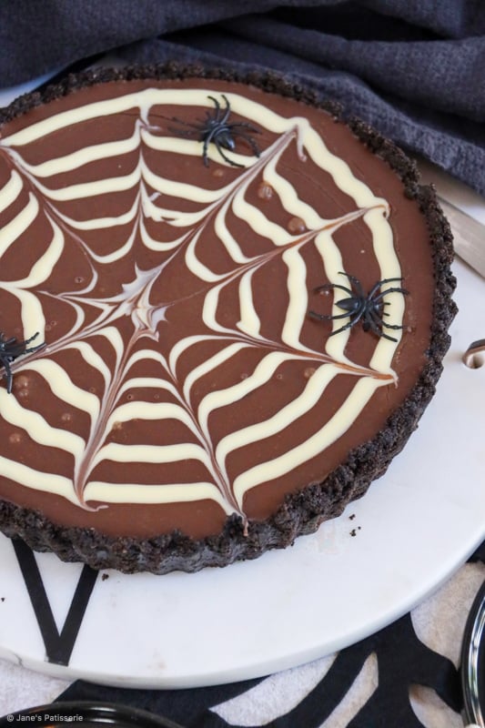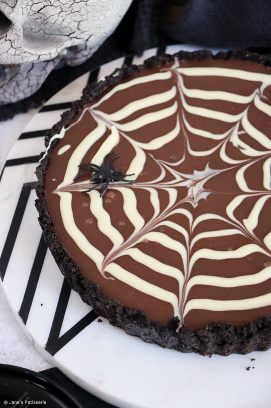 I won’t lie, I did just use plastic spiders to decorate the tart as its what I had, and I had run out of any edible spider sweets on me! However, you can of course use what you want and remove the spiders before eating haha.