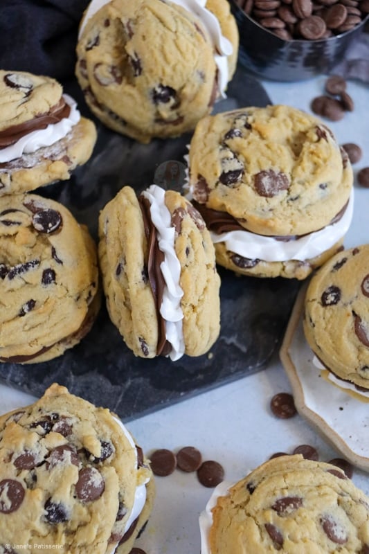 As you don’t need the giant chunky size of cookie, I don’t chill the cookie dough. I make it, scoop it, and bake it and cool. I just want them to spread ever so slightly to be a good sandwich size.