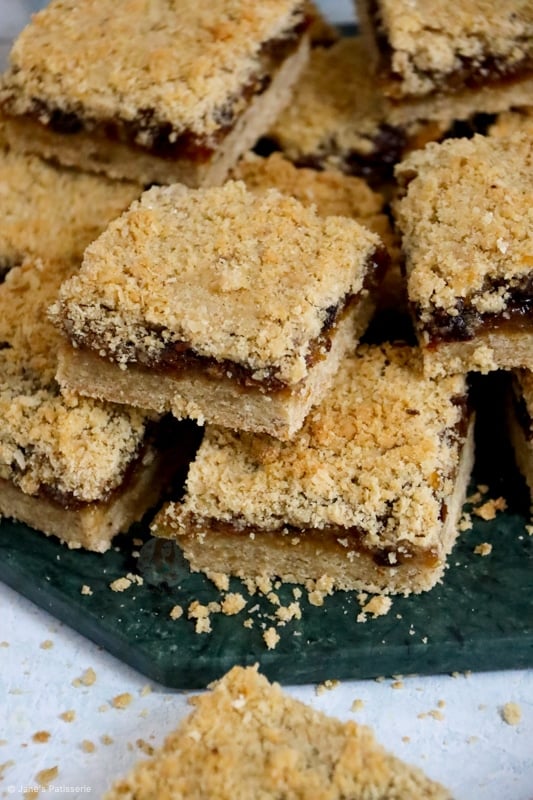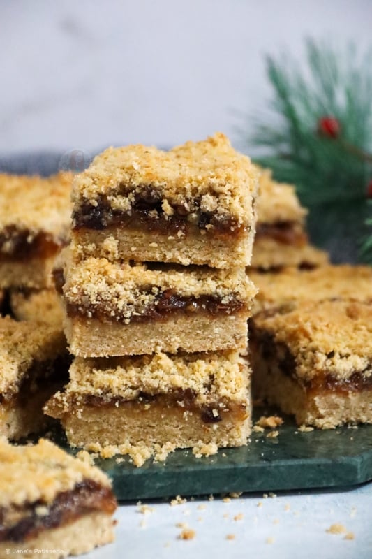So when it comes to the mincemeat part of a mince pie or these crumble bars, no there is no actual meat involved. I know so many of you will know that, but some people really don’t.
