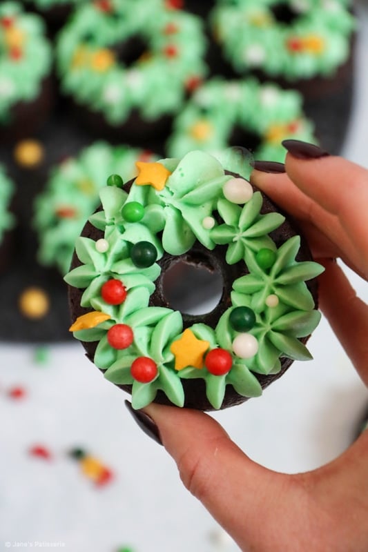 Say hello to the cutest little edible Christmas wreaths you fill find this festive season! They are sweet, super chocolatey, and yes, they are brownie doughnuts. HELLO!!