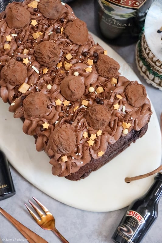 For the frosting, it also follows the idea of my chocolate fudge loaf cake and my chocolate fudge cake with one of the best chocolate frostings you will ever make. Usually I use evaporated milk to level up the frosting, but obviously as this is a baileys themed bake, this recipe uses Baileys instead.