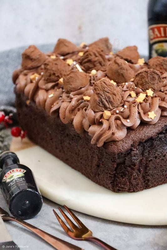 A delicious decadent lush chocolatey Baileys Loaf Cake sounds absolutely gorgeous, soft melt in the mouth light sponge cake yet rich with Baileys covered in a lush extremely satisfying chocolate frosting many thanks Jane for sharing this recipe with everyone!