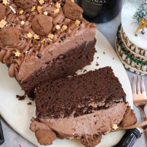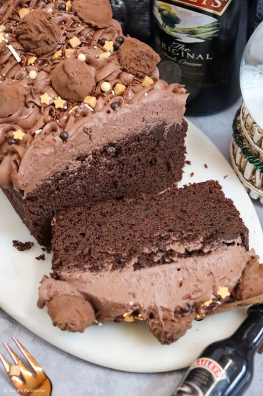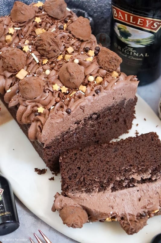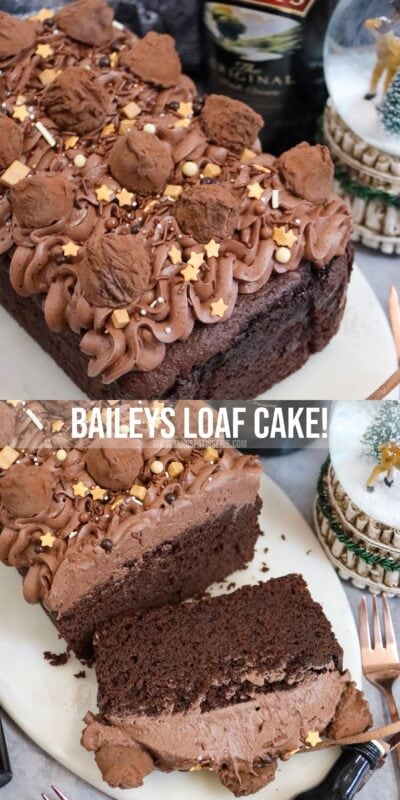 A thick and fudgey baileys loaf cake with a chocolate fudge cake, baileys chocolate fudge frosting and more!