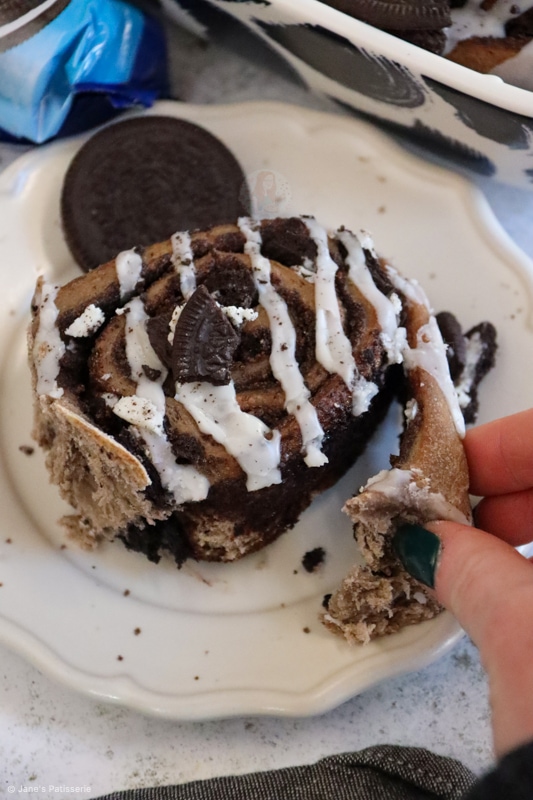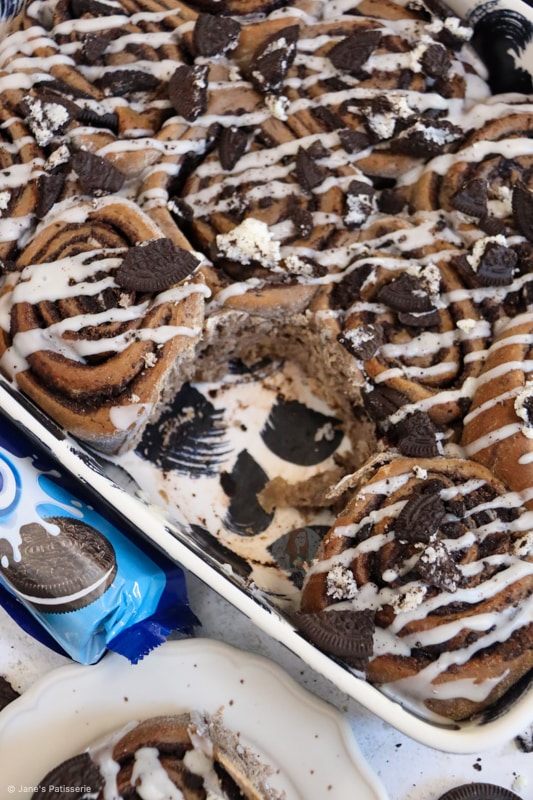 I changed this one slightly by adding in finely blitzed oreos into the bread dough itself. It changes the look, the colour and taste – but it worked SO WELL!!