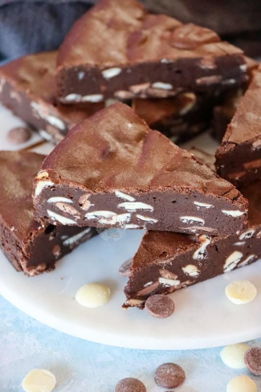 For the actual brownies, I tried so many different recipe and method ideas – and in the end, its pretty darn close to my normal chocolate chip brownies anyway.