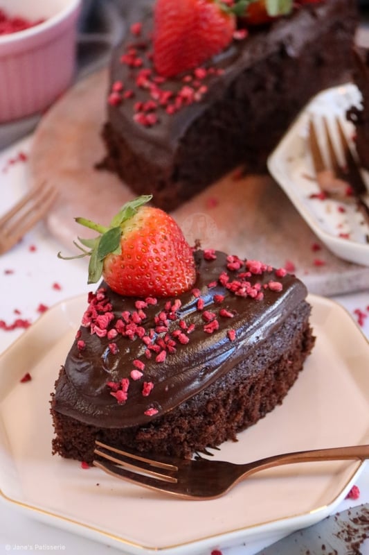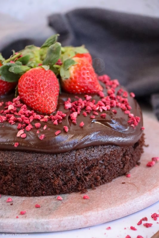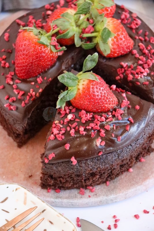 A deliciously easy chocolate cake for two with a simple chocolate sponge, chocolate ganache frosting and more!