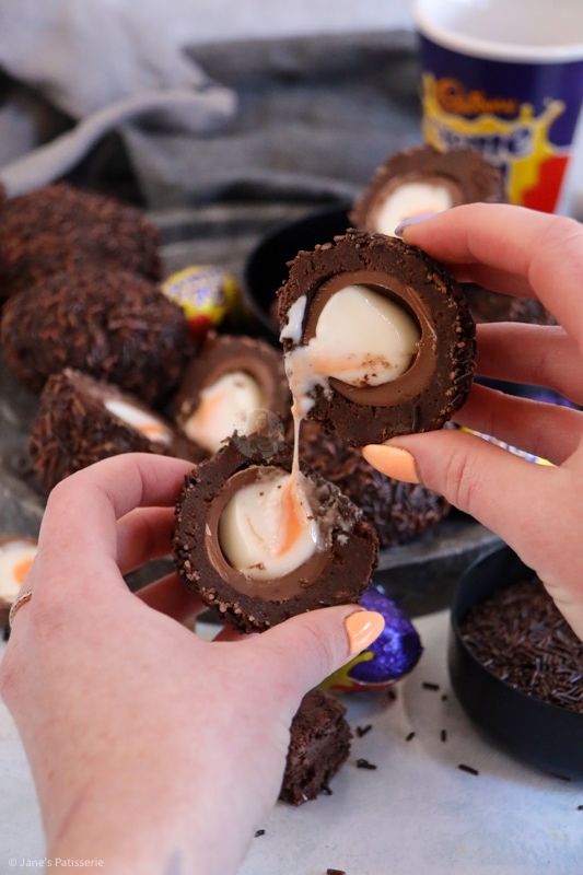 I then let the Creme Egg scotch eggs set slightly in the fridge before devouring every single crumb… BECAUSE JUST LOOK AT THEM! They are incredible!