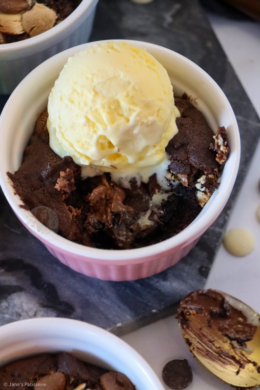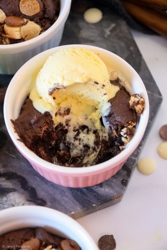 When I make my individual cookie dough desserts, everyone raves about them. They are like the warm gooey cookie dough you get from Pizza Hut, or other takeaway places and restaurants and they are a little bit life changing I won’t lie.