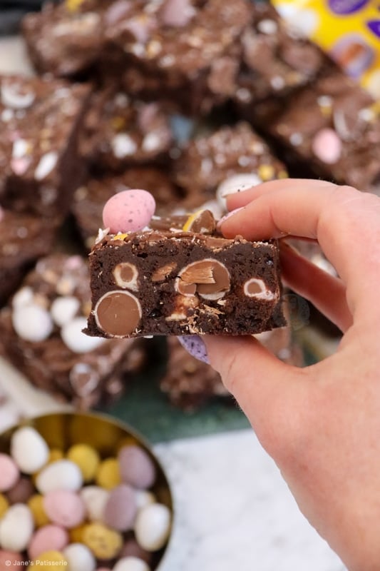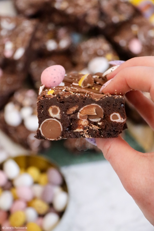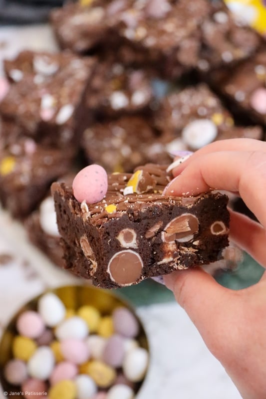 When it comes to the chocolate chips, or decoration chocolate however, in all brownies, you can use whatever you like. You don’t HAVE to add chocolate chips to the brownies if you don’t want to, as you are already adding in mini eggs, but I just can’t help myself.