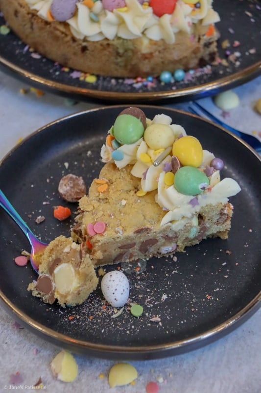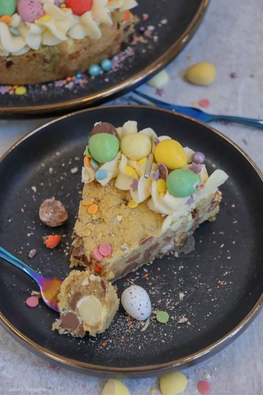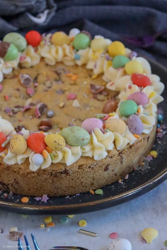 These giant cookies are great for occasions, such as Easter, as you can decorate them and they just look impressive. They are also incredibly easy to make – if you want to level it up more though, check out my mini egg cookie cake; thats two layers.