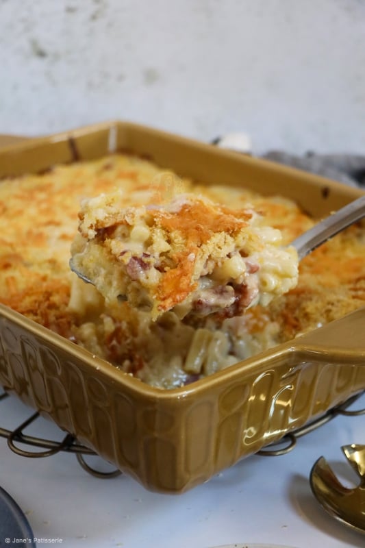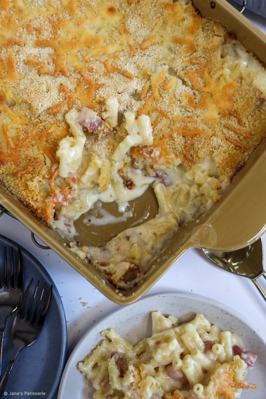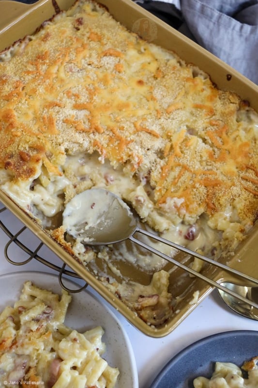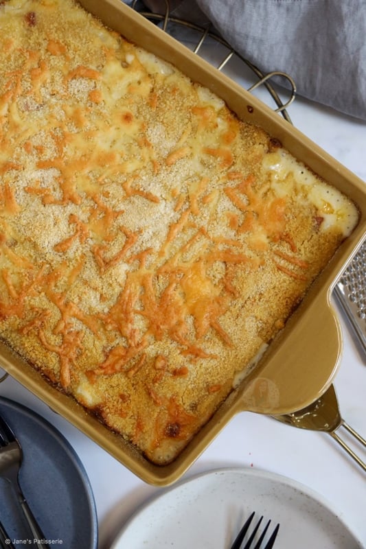 When it comes to something cheese themed, I want to add as much as possible. I do prefer mature cheeses, but that is my choice. I use a mix of mainly mature cheddar cheese, and parmesan in the homemade cheese sauce, and then I use extra mature cheddar cheese on the top.