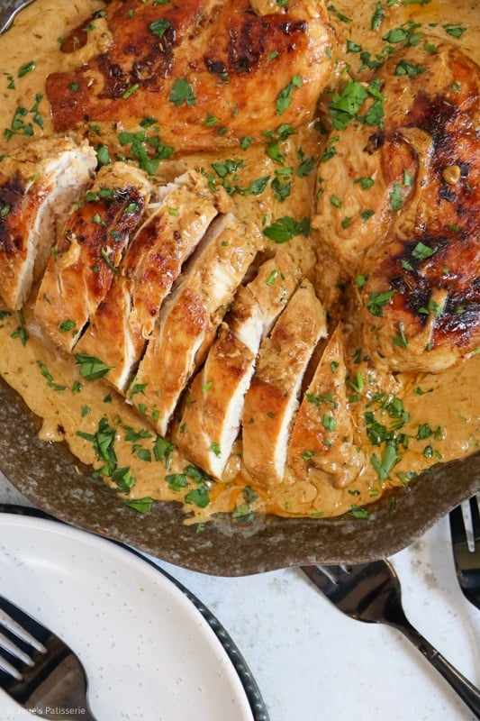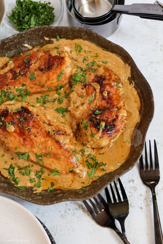 This dish has a delicious flavour, and I adore it. I have several people taste test this beauty and it went down SO well that I have made it several times since. The chicken is easy to cook, the sauce basically makes itself, and it’s adaptable to your flavour choices with spices.