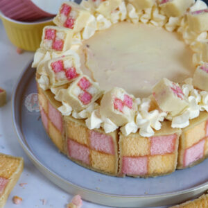 One of the most highly requested and viral bakes that there have ever been… the Battenberg Cheesecake. Marrying all your favourite Battenberg bits into cheesecake form – what could be better?!