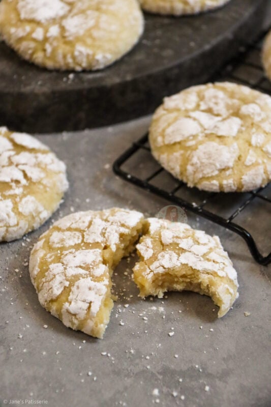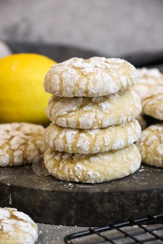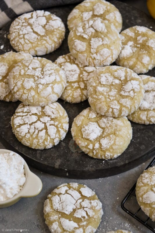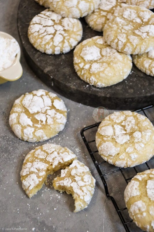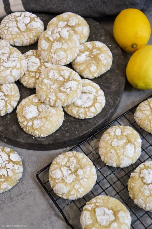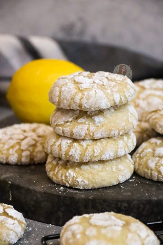 Soft, buttery and zingy lemon crinkle cookies with an icing sugar coating, that are melt in your mouth perfect.