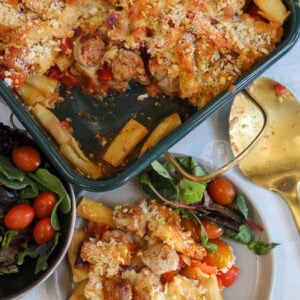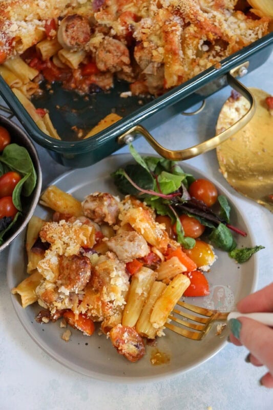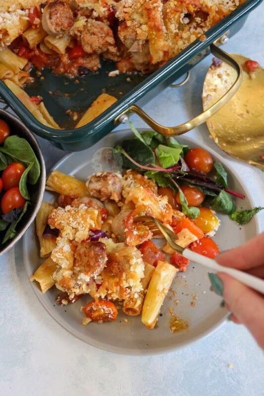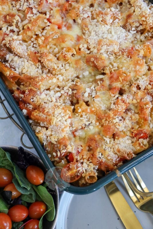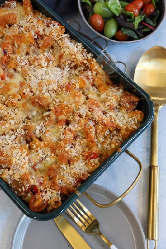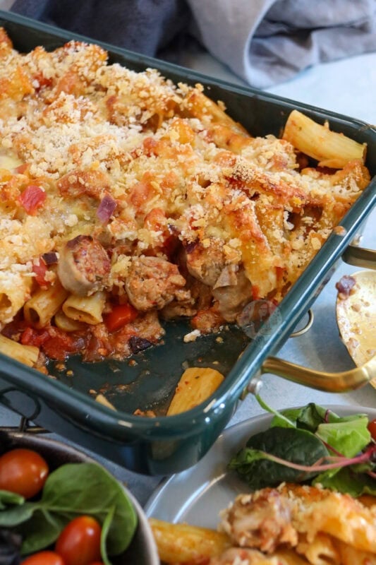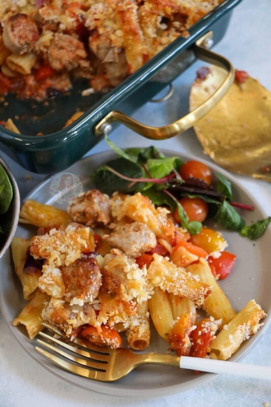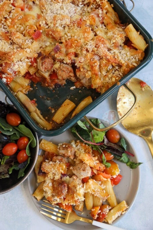One of the easiest and best weekday dinner ideas that I just adore… a sausage pasta bake is iconic, easy and delicious.