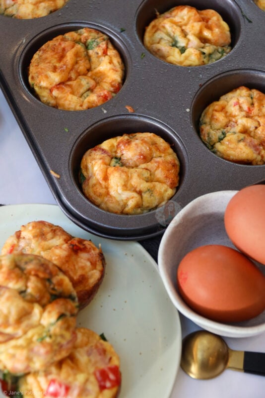 If you want a more authentic mousse texture maybe to your egg bites, then using a waterbath to bake them is probably best, I am however lazy and don’t bother as I like the texture as it is in this recipe.