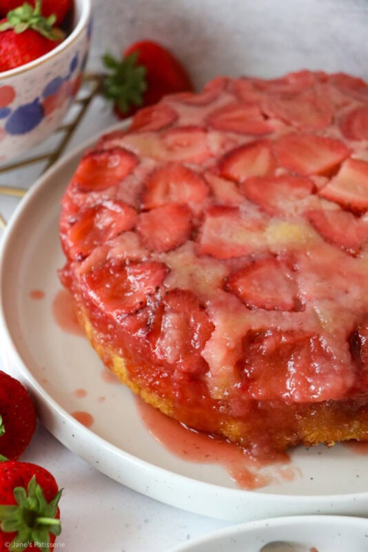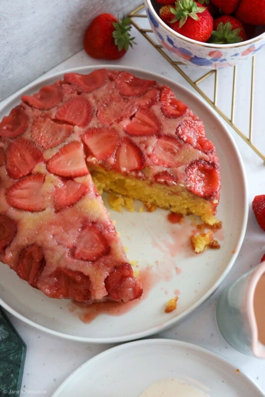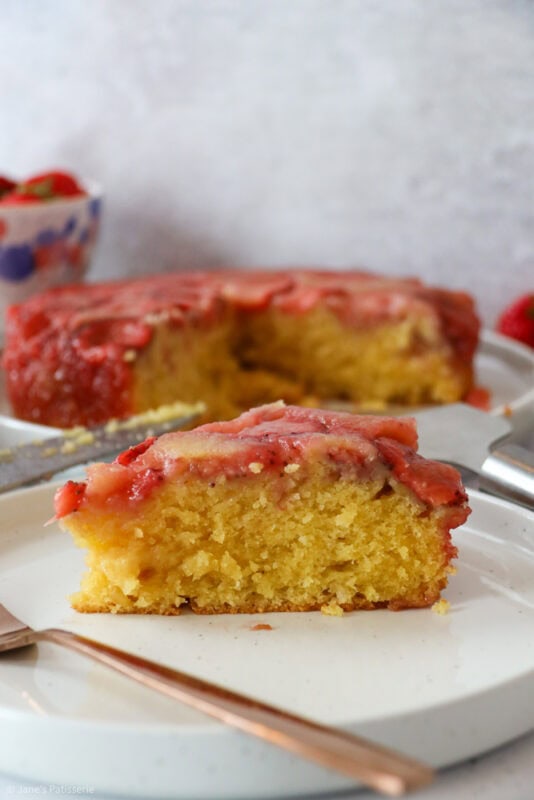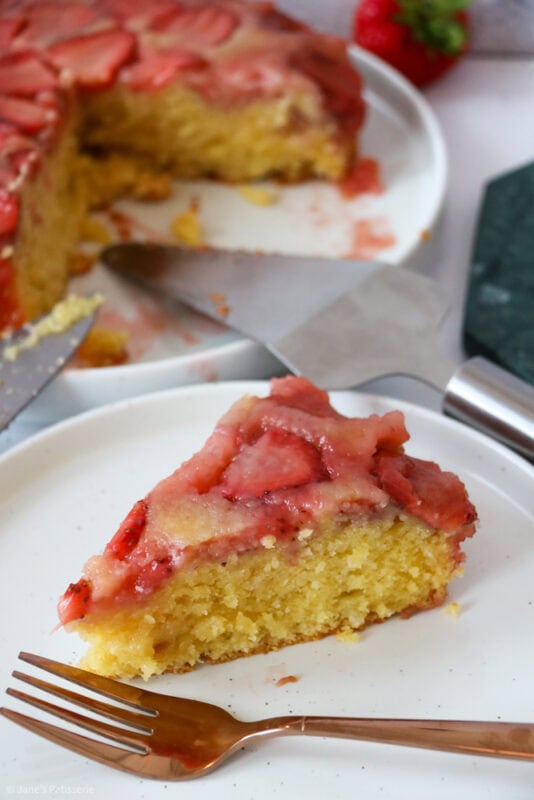 A simple yet delightful sponge cake, with a strawberry top (or bottom…!). Perfect for the summer season and fresh berries