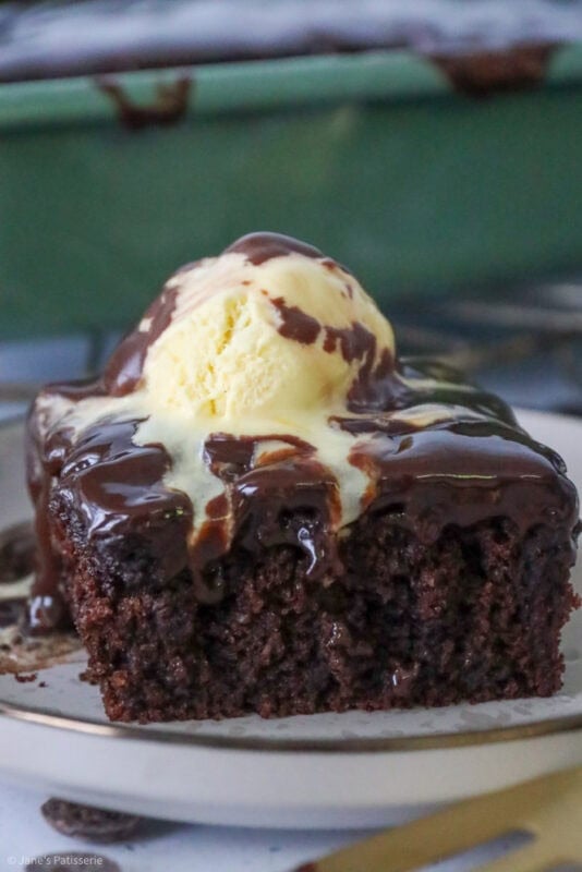 Gorgeous, rich and delightful homemade chocolate sticky toffee pudding with homemade chocolate sticky toffee sauce and served with ice cream!