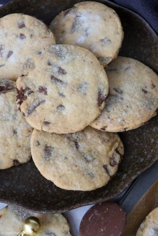 When I am talking about these delicious chocolate button shortbread cookies, it’s more in comparison to an in-store bakery… and in this particular instance, Marks & Spencers. They are renowned for making utterly epic treats in their in-store bakeries, and I have had endless requests for a homemade version of a number of treats – but particularly these chocolate button shortbreads.