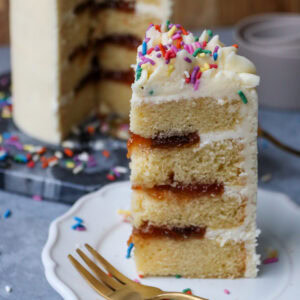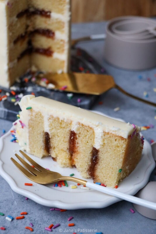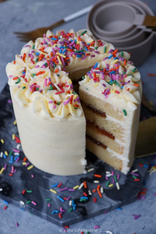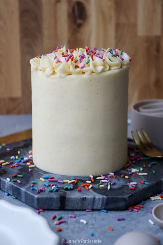 A cute little 4″ mini vanilla cake – the perfect small batch cake, bento box size cake, or for a mini celebration.
