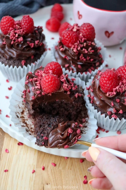 I have a variety of love-themed bakes, from my valentines cookie, to my valentines brownie, and even some cute valentines sandwich cookies and I adore them all. They are bakes that are ideal for such a day, but as they do serve more people than just two, this is where these small batch chocolate cupcakes fit perfectly into that gap.